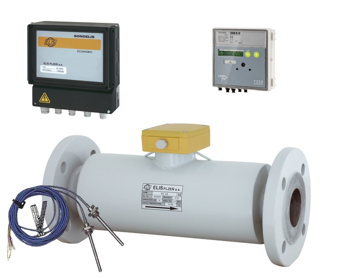 - Měřící systém ELISTHERM ET3020.x3 se skládá z kalorimetrického počitadla, odporových snímačů Pt100 nebo Pt500 a ultrazvukového průtokoměru SONOELIS SE4041.